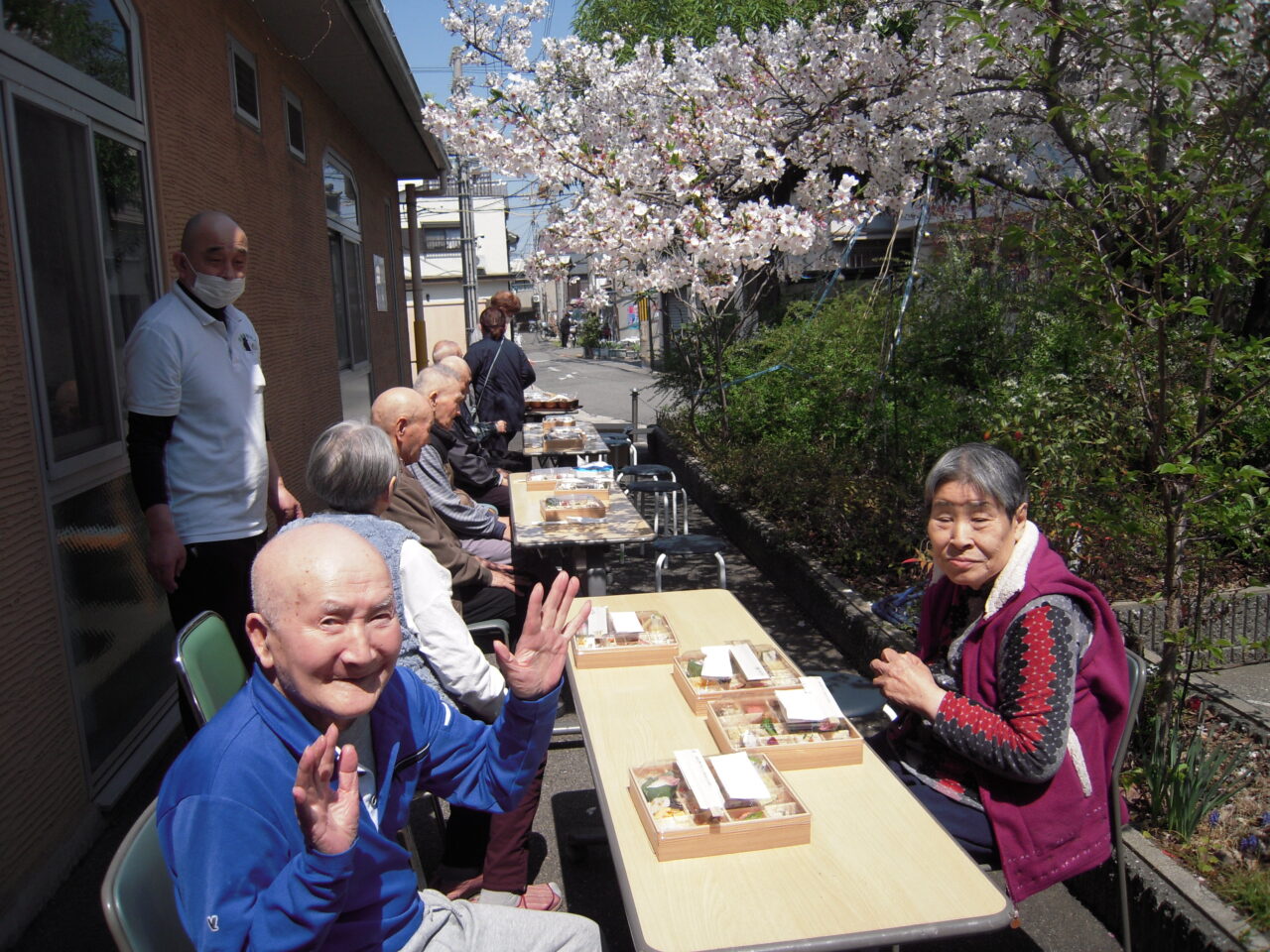 2026.04.09 お花見🌸弁当🍱(*´▽`*) めぐみ苑で「お花見🌸」をしました。 先週でしたが、お天気も良くて桜🌸も満開でした。 入居者さんも、お好きなお弁当を食べながら桜を楽しみました。 ALL>