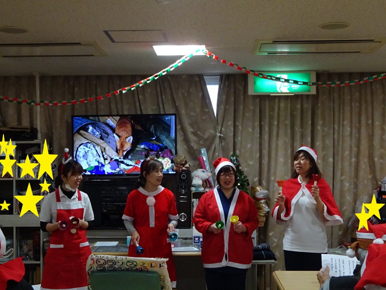 2018.12.18 クリスマス行事 その1 ⛄ 職員で「きよしこのよる」など、ハンドベルの演奏を行いました ハンドベルのキレイな音色を聴くと、穏やかな気持ちになります 皆で、サンタさんの扮装をして楽しみました デイサービスめぐみ <ALL>