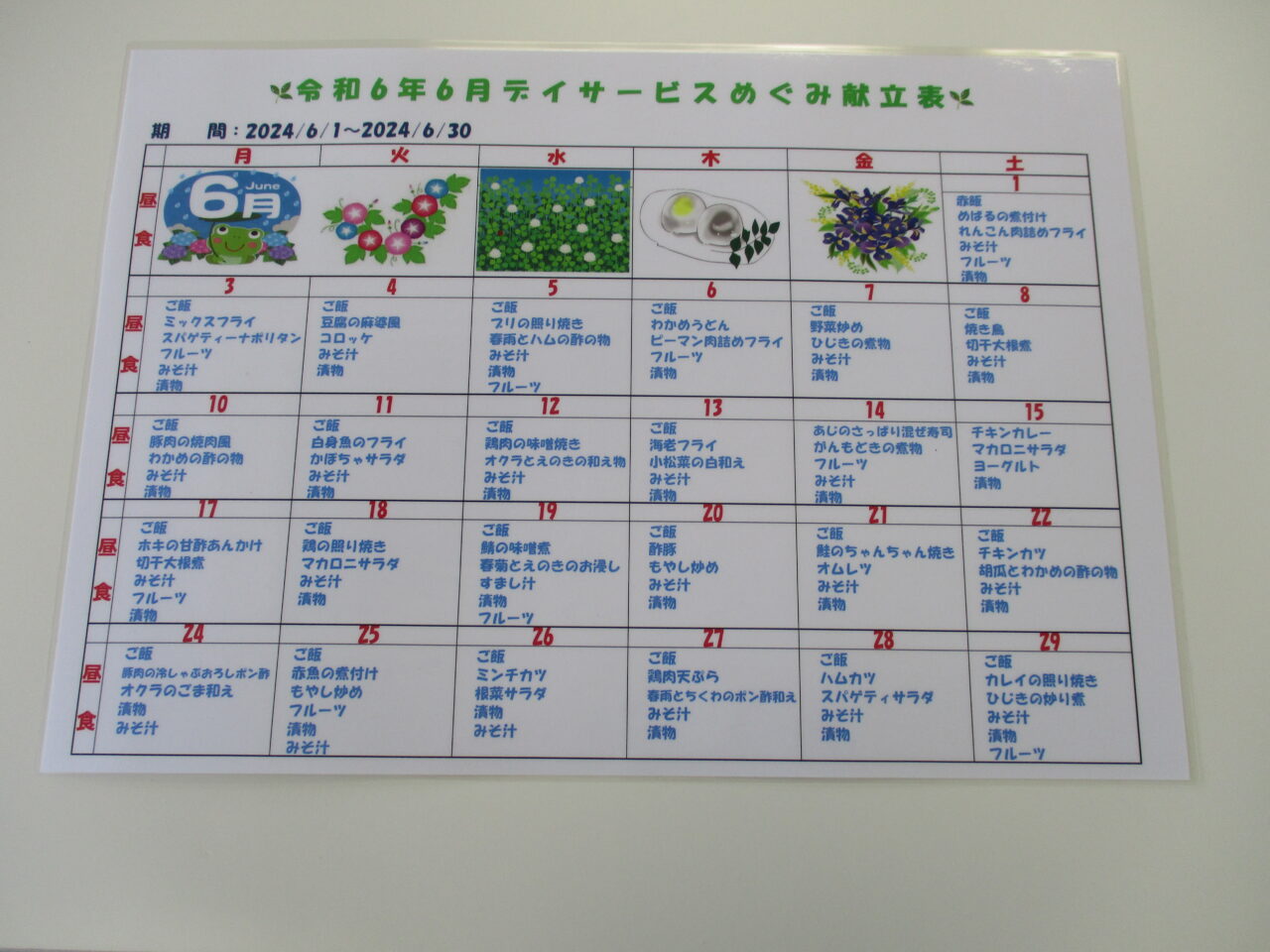 デイサービスめぐみ6月お昼の献立表が出来ました
