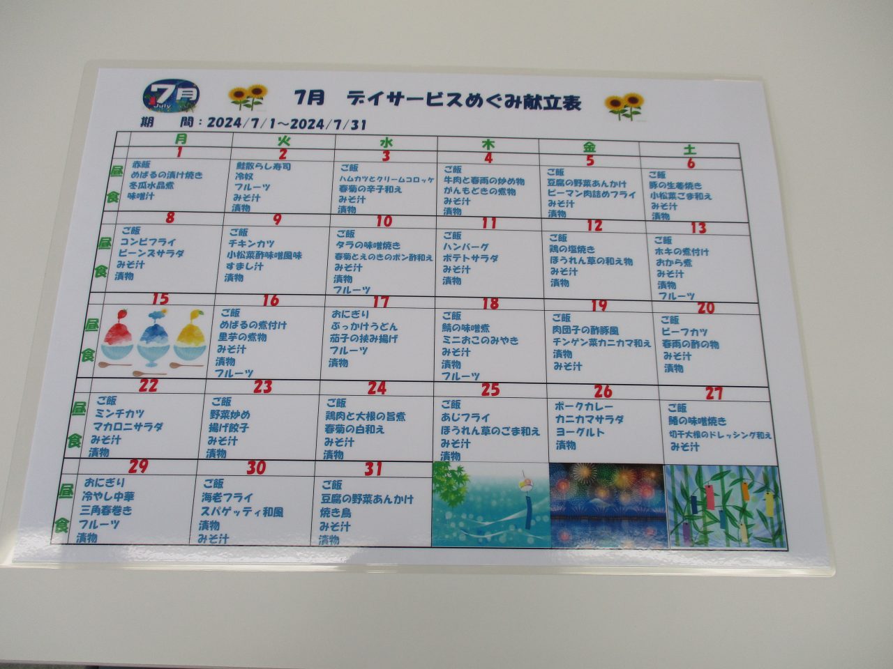 デイサービスめぐみ7月の献立表🍚が出来ました。