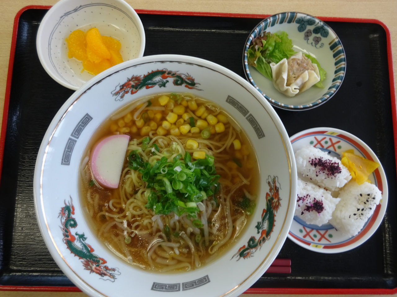 ・ラーメン🍜・シュウマイ・漬物・フルーツ