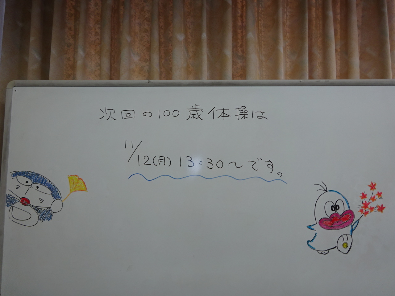 2018.11.05 今日は「百歳体操」です ♪ 今日は、めぐみ 階 会議室 13時30分より「百歳体操」を行います お天気も良く、絶好のスポーツ日和 散歩がてらに、お越しくださいね 総合相談窓口めぐみ <ALL>