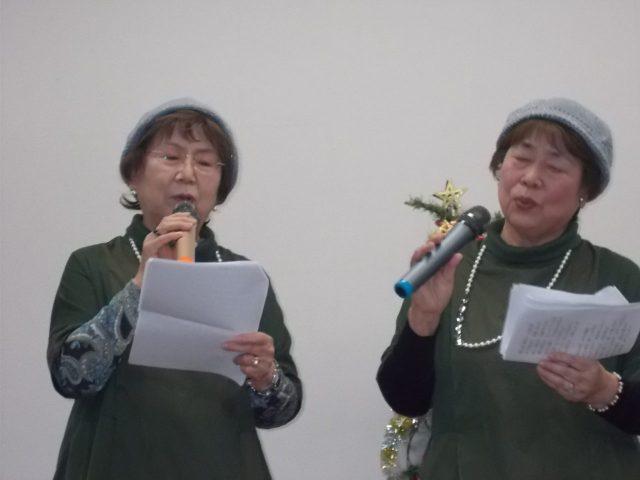 2024.12.12 想い出教室クリスマスコンサート その② ゲストに千本北地域の「南京マメーズ」のお二人と玉出包括から職員様がお越しくださいました。 最後に皆さんでクリスマスソング3曲を歌いました。 <ALL>