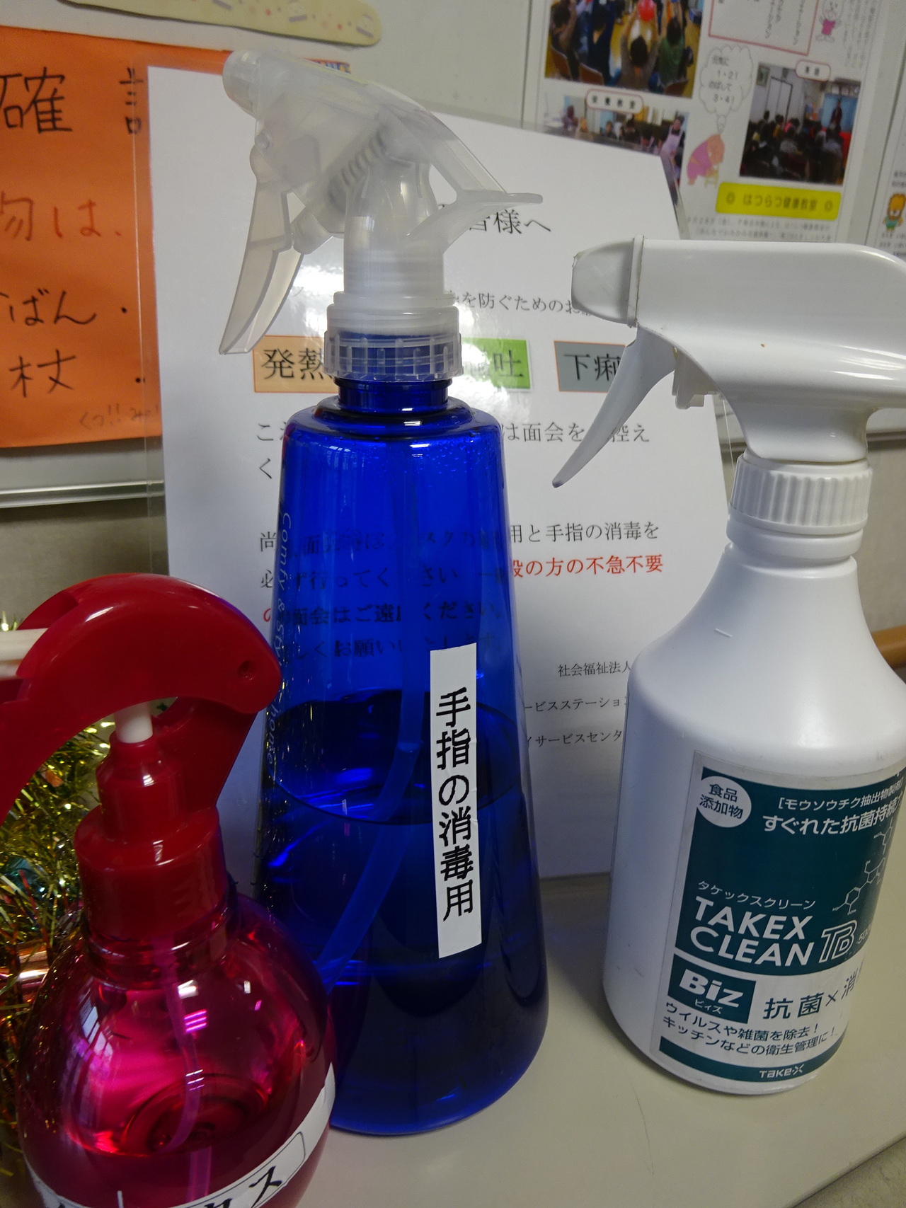 2020.03.10 玄関前に、消毒剤を置いています (‘◇’)ゞ 玄関前に消毒剤を置いています 以前より置いていましたが、沢山ご利用出来るように施設内にも増やしました また、「めぐみ苑」では、原則として面会をお断りしています 「コロナウイルス」の感染防止の為、ご協力よろしくお願い致します <ALL>