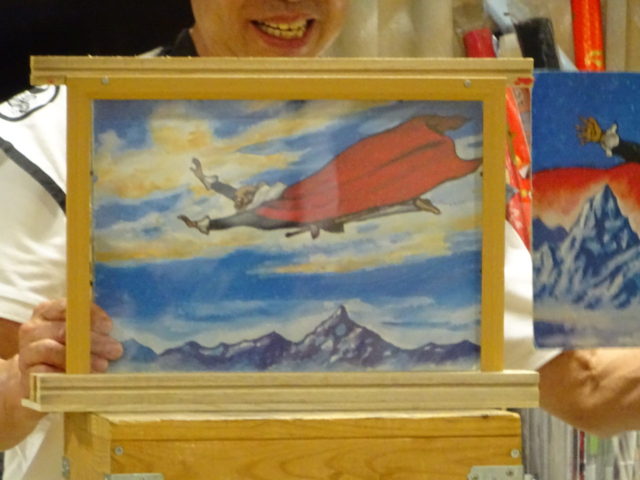 2023.05.11 紙芝居「黄金バット」❢② (゜o゜) 「ビュ~ン 黄金バットが助け来た。めでたし、めでたし。」 「おっちゃん、続きはいつや~」 皆さん、童心に帰った様子。 この後、懐かしいお菓子も食べて頂きました。 <ALL>