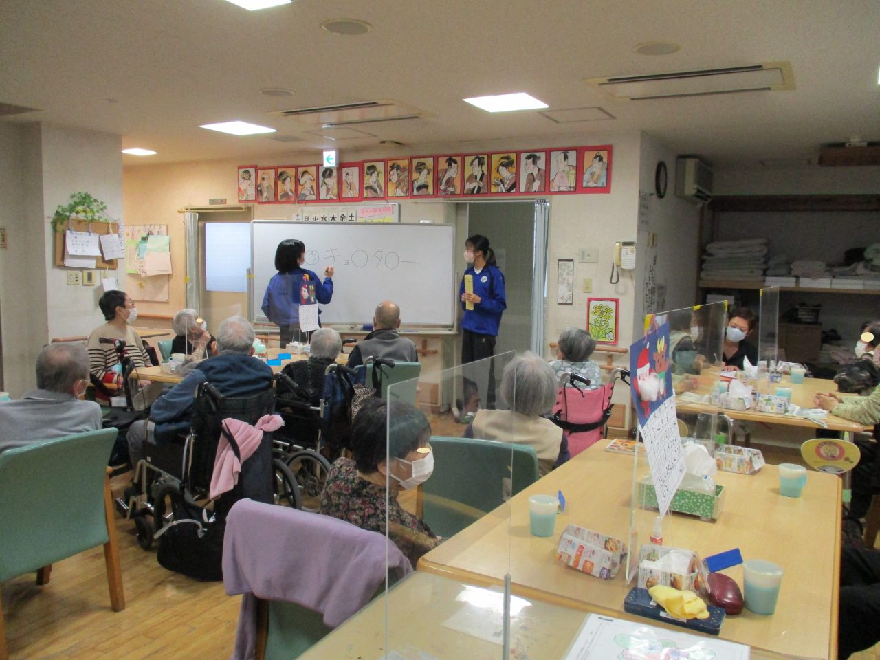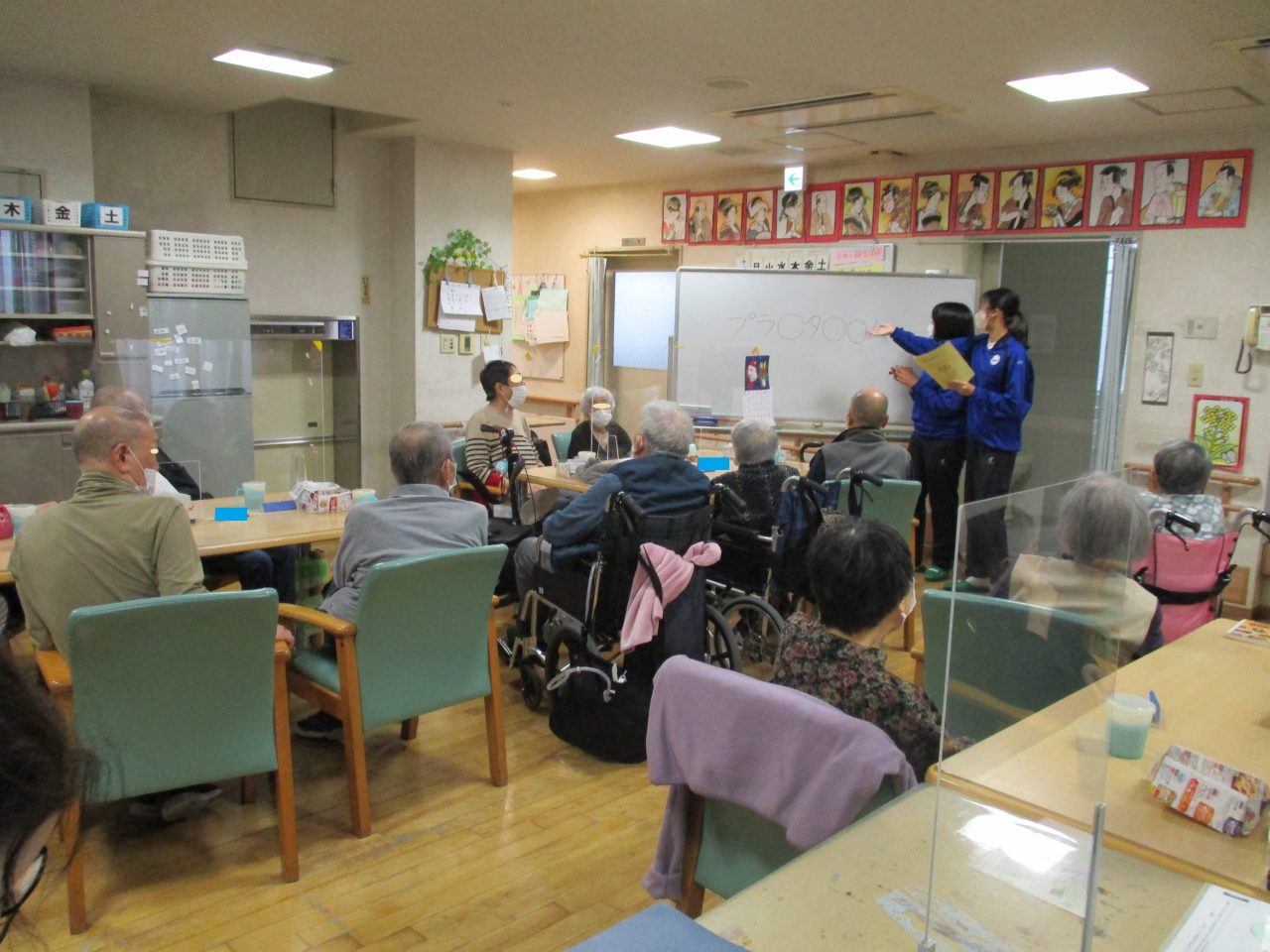 2024.11.15 職場体験2日目 (*^_^*) デイサービスめぐみ職場体験2日目は、レクリエーションを行いました。 看護師さんと一緒に体操🙆🙆♂️を行い、生徒がクイズを開催しました。 事前に様々なクイズを準備し、利用者様と一緒に楽しむことを目指しました。 優しくヒントを出したりして、リラックスして参加できるように工夫していました。 これからも様々な活動を通じて利用者様に笑顔を届けていきたいと思います。 <ALL>